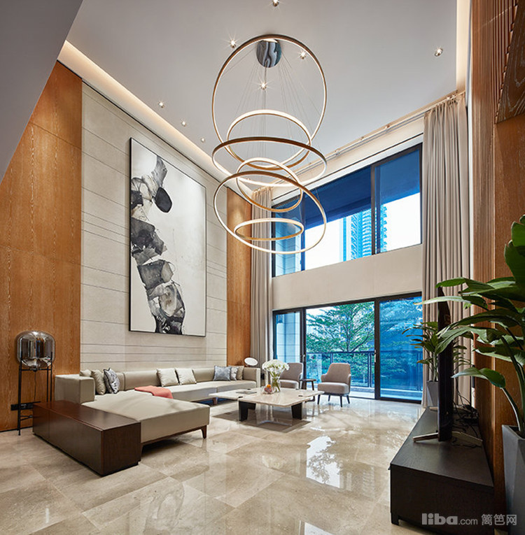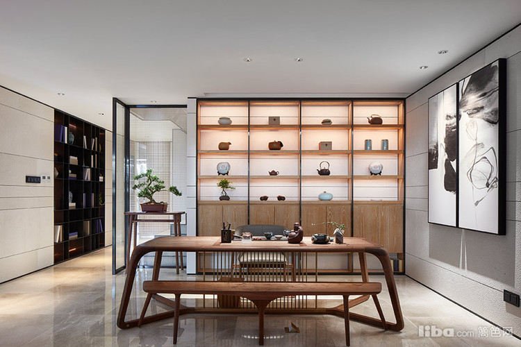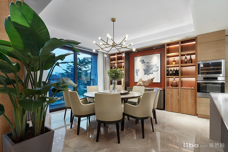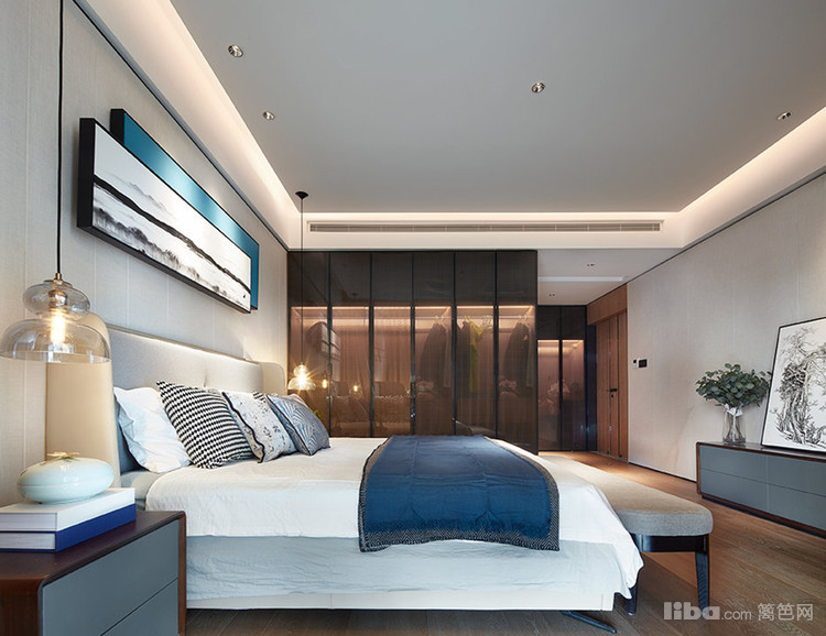 新中式+极简,浅色明亮系,加上业主喜欢的色彩基调,以及突出每个空间的特色