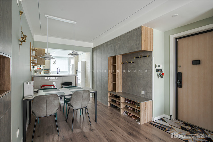 一进门就是一个开放式空间,看起来也更舒服,进门后右侧是餐厅,左侧是客厅。