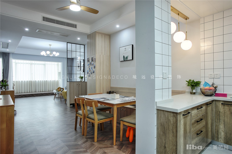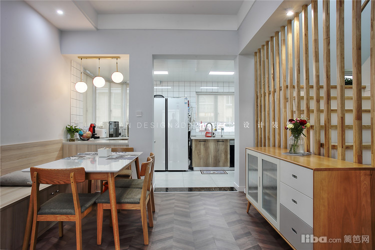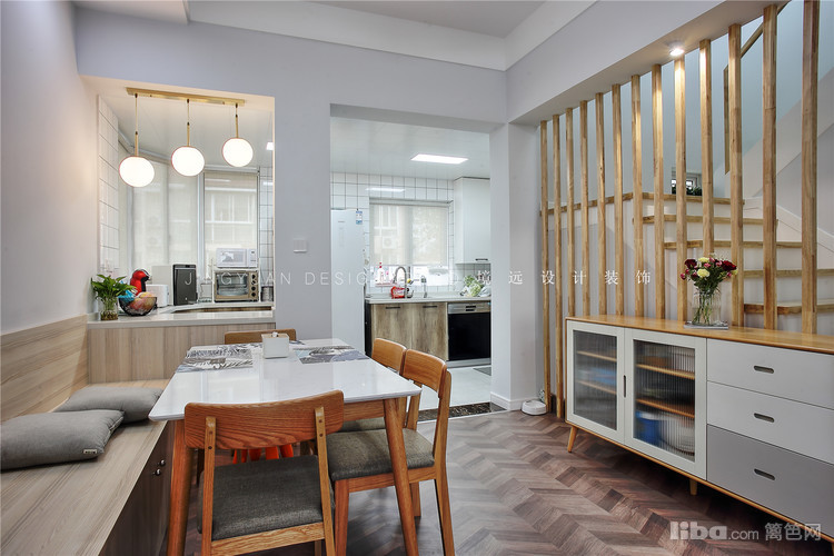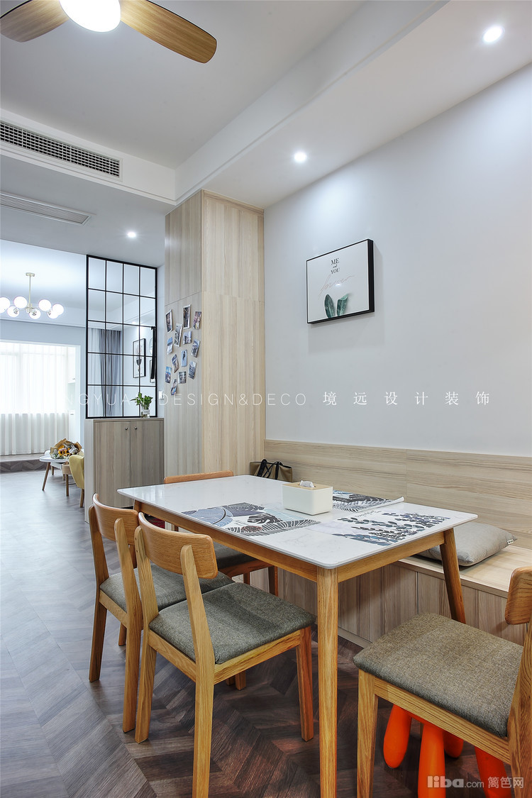 餐厅选择了非常实用的卡座设计,同时给人以安全感,搭配原木餐桌餐椅,素雅又充满了暖意。