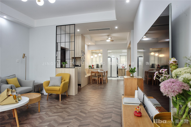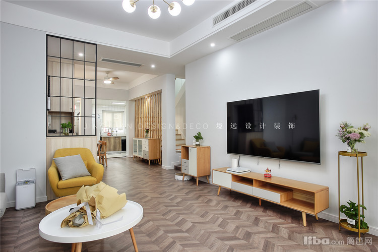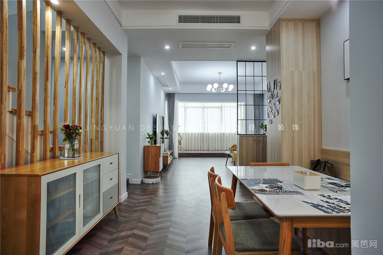 这是一套180平米的北欧+原木风格装修案例,大面积的灰白+木色家具,简约、自然,人性化的家装设计.