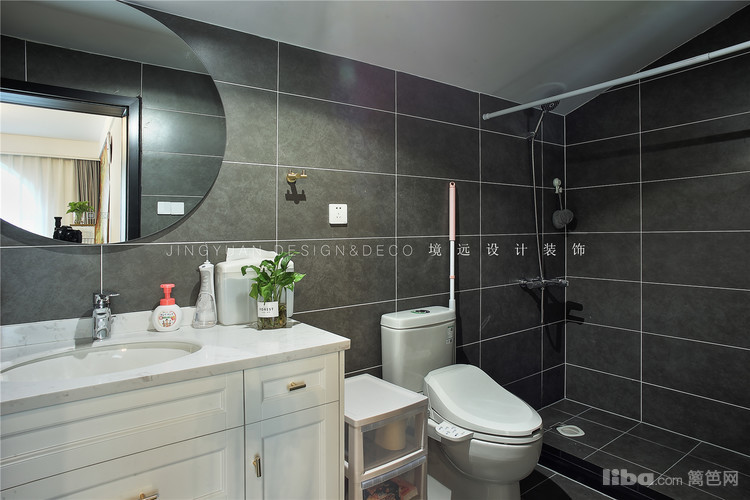 卫生间干湿分离布局合理,洗漱空间独立出来。地面选择不同颜色的六角砖进行撞色拼接,打造时尚个性的空间层次感。