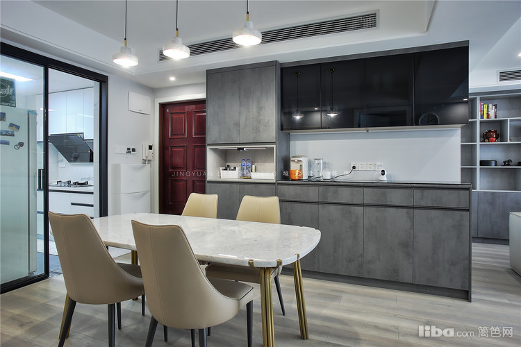 一处独居格调的餐厅,让一日三餐都充满了仪式感,米黄色真皮座椅搭配大理石餐桌面,以金属的质感,轻松打造出让人惊艳的轻奢主义。