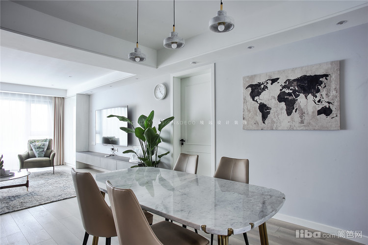 开放式的餐桌和客厅相连,让空间视觉感更延伸,每一次归家,都能闻到日常幸福的滋味。