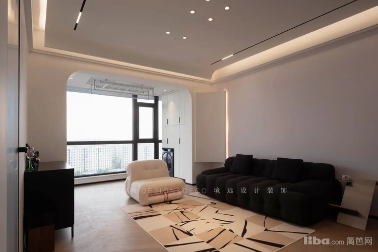 软糯圆乎乎的现代风格造型感沙发,深浅配色,使得整体空间保持黑白色调,点睛又吸睛~
