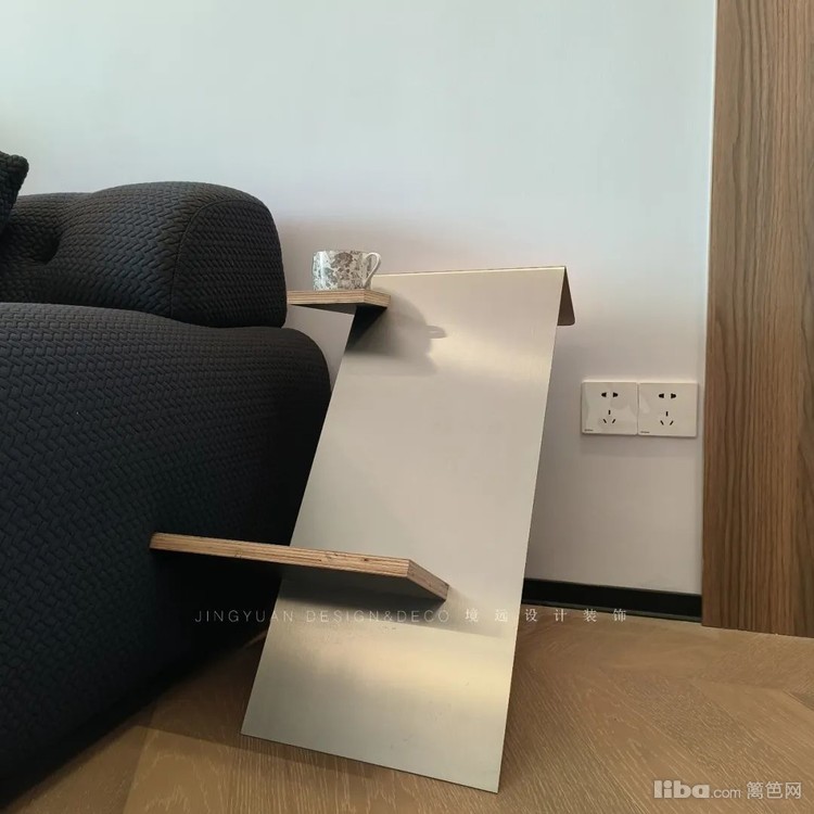 几何金属造型感边几充满现代风格,小型体积不打扰客厅空间,随手放置咖啡杯也非常合适。