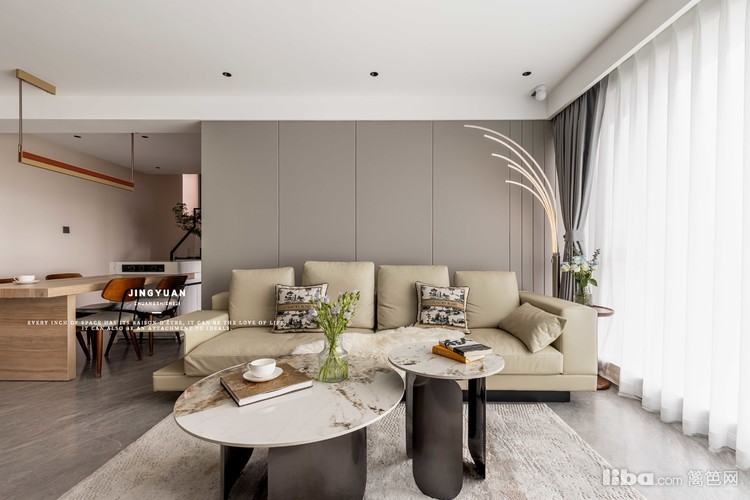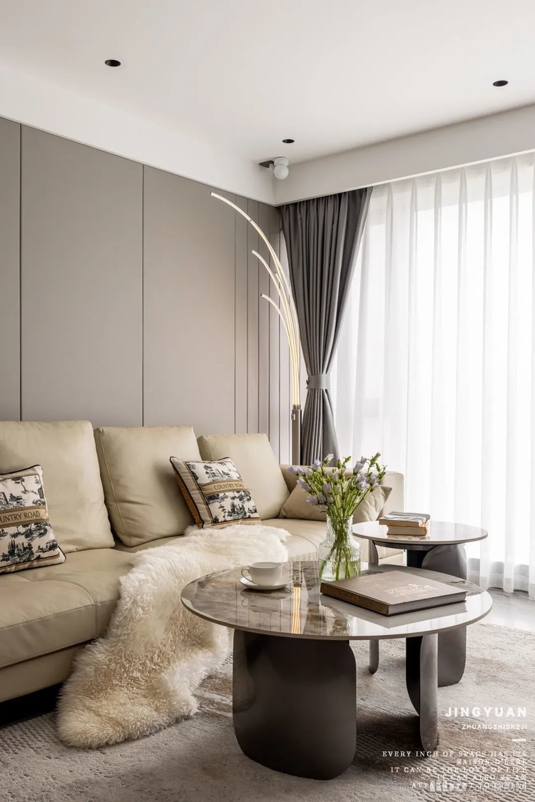 客厅作为家中风格最明显的区域,主要以采光明亮+体现轻奢感为设计点。