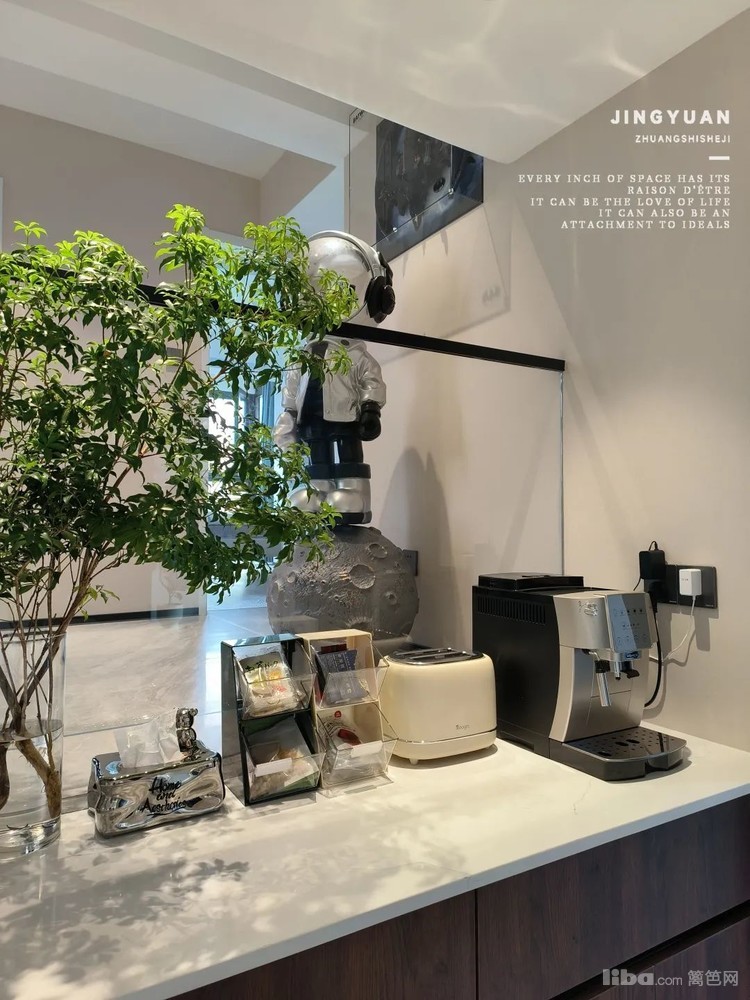 放置咖啡机+烤面包机等,就是一个简单的西餐吧台。日常烹饪使用更多样化,也不影响厨房使用空间。