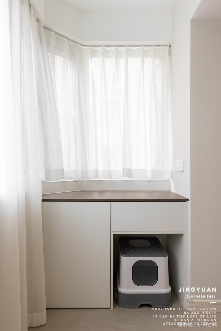 另一侧是定制台面柜体,给家中喵星人专属的厕所空间。