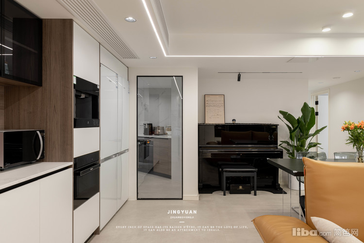 厨房入口改动朝向,由原来的侧边改到面向客厅。使用上也更方便,动线更合理。侧边墙体拐角处也正好放置大件钢琴。