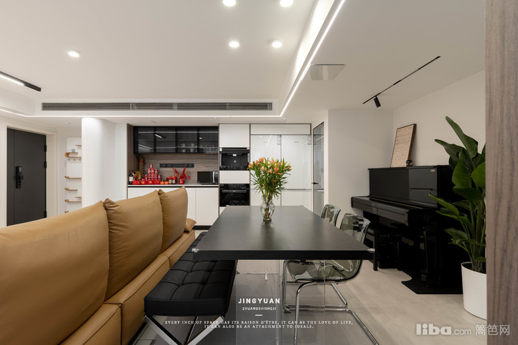 无主灯设计,利用轨道射灯和超薄筒灯,保证层高不压抑。纵向空间也十分宽阔。