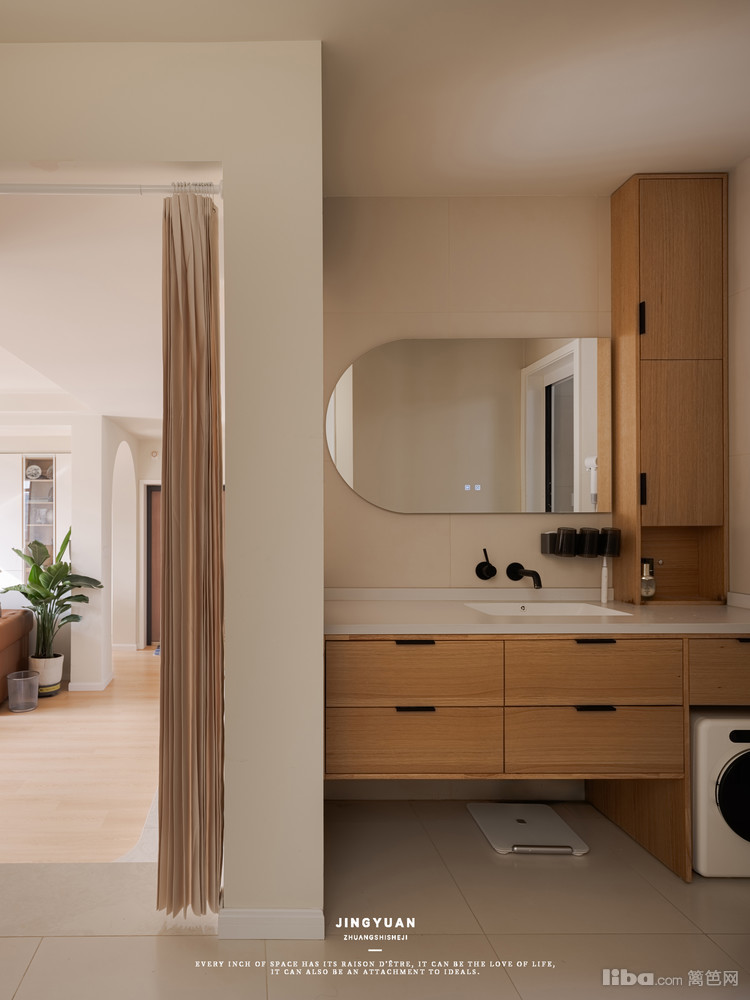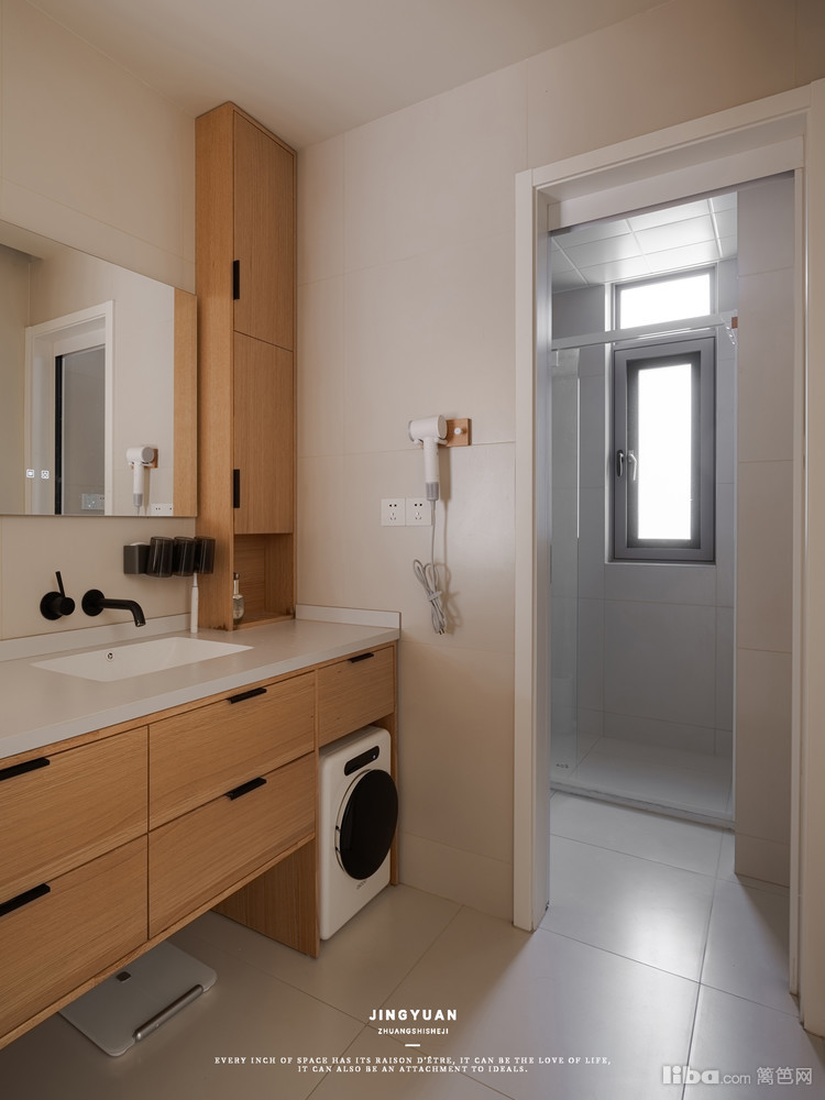 我们将原来封闭的卫生间改为干湿分离,洗手池外放。