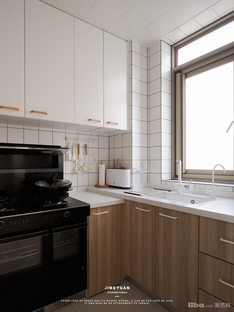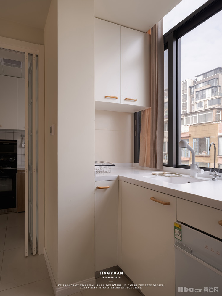 厨房摒弃移门,改为双折叠门,平时可以收到两边,将空间最大化;
