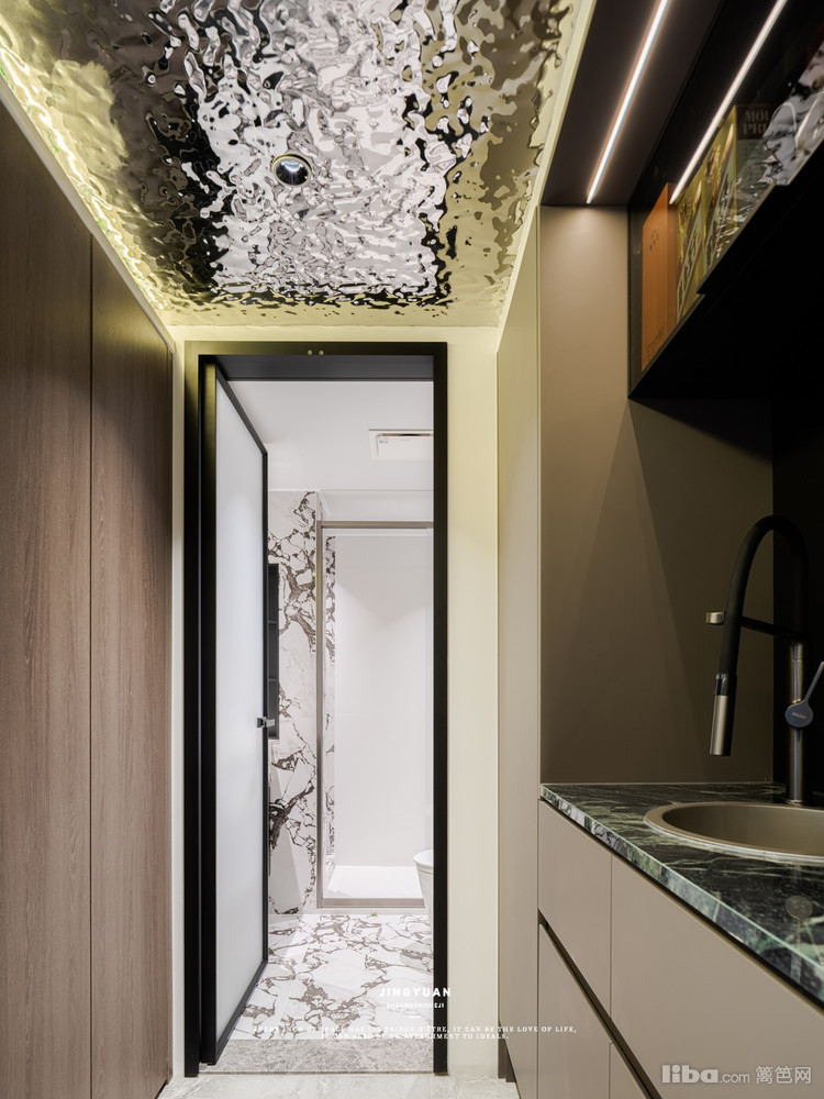 靠近走廊一侧采用玻璃砖砌墙,引进自然光线,空间更通透
