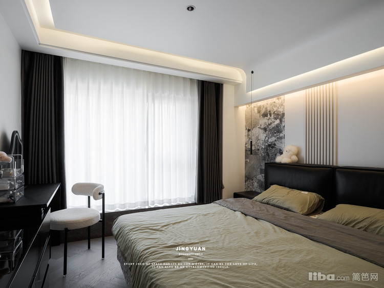 次卧作为长辈房,无主灯设计不仅显空间大,而且容易让人有个好的睡眠环境