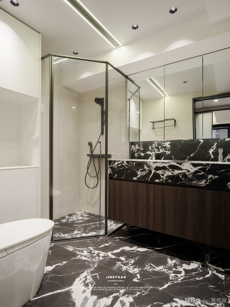 二楼卫生间主打意式氛围感,干湿分离布局用黑白色调搭配,简简单单营造出空间的高级感