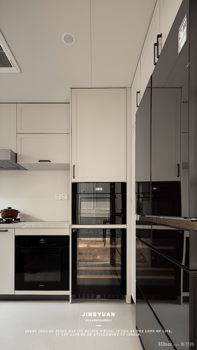 菱花白的橱柜,勾勒出空间的纯净与优雅,U型设计,巧妙地将厨房的实用与美观融为一体;