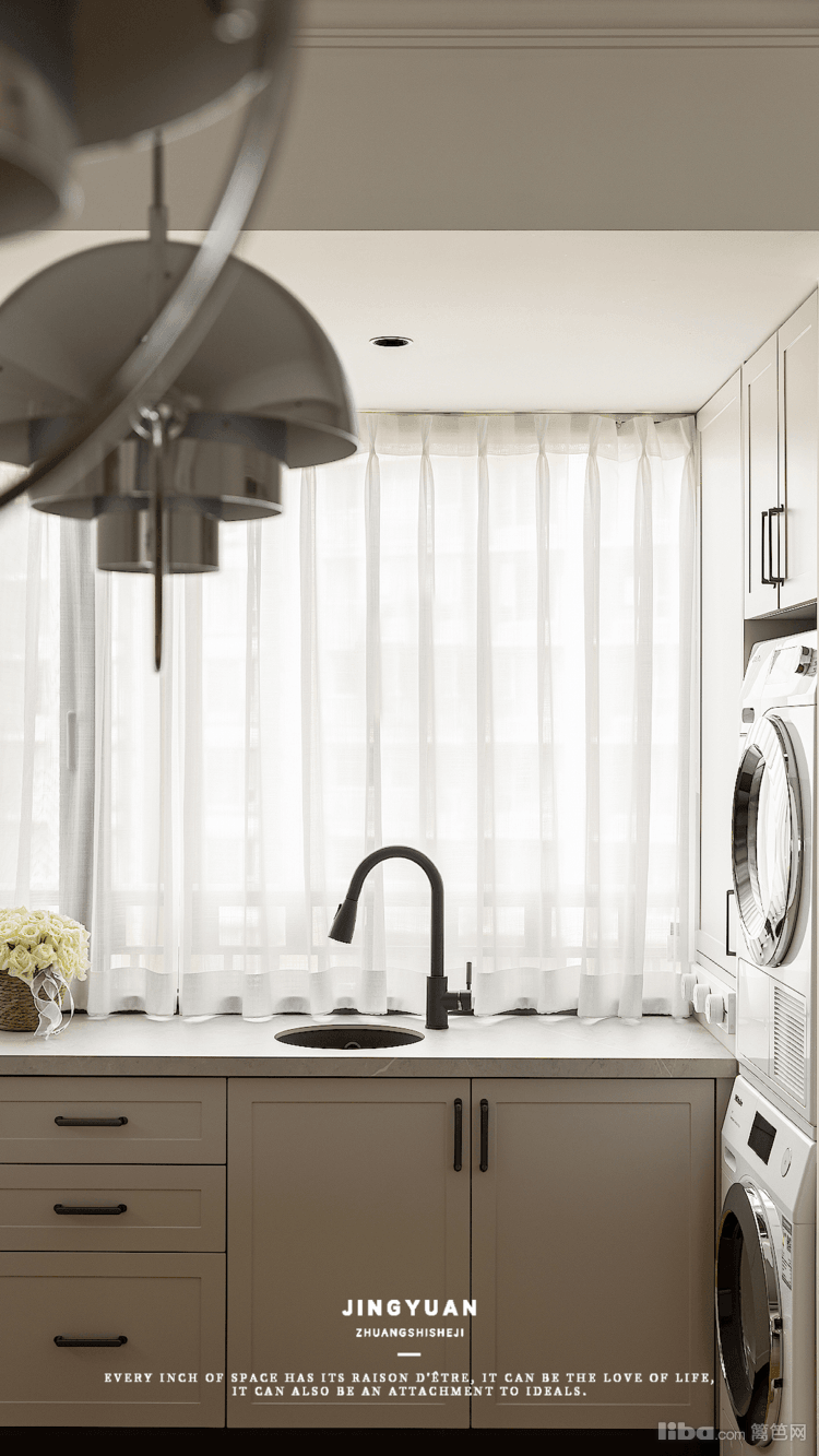 北阳台变身为西式台面,洗烘机静静地立在一旁;