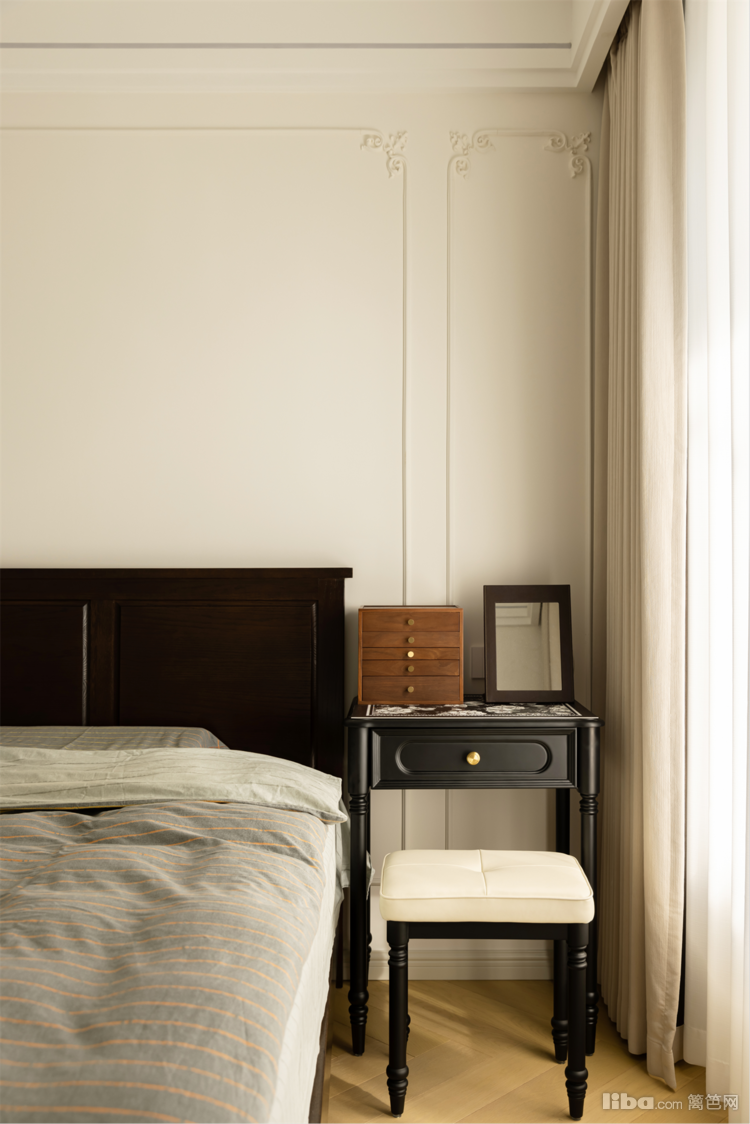 为了突出法式风格整体在细节上凸显,硬装做到位,软装锦上添花,深浅色搭配更出彩。