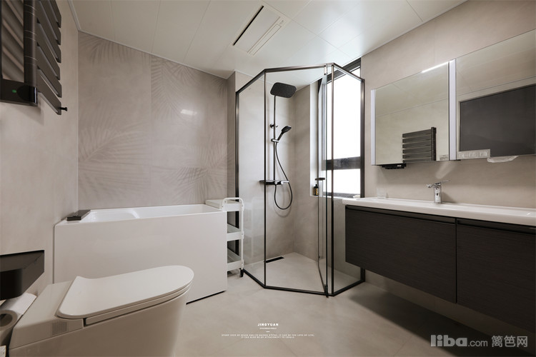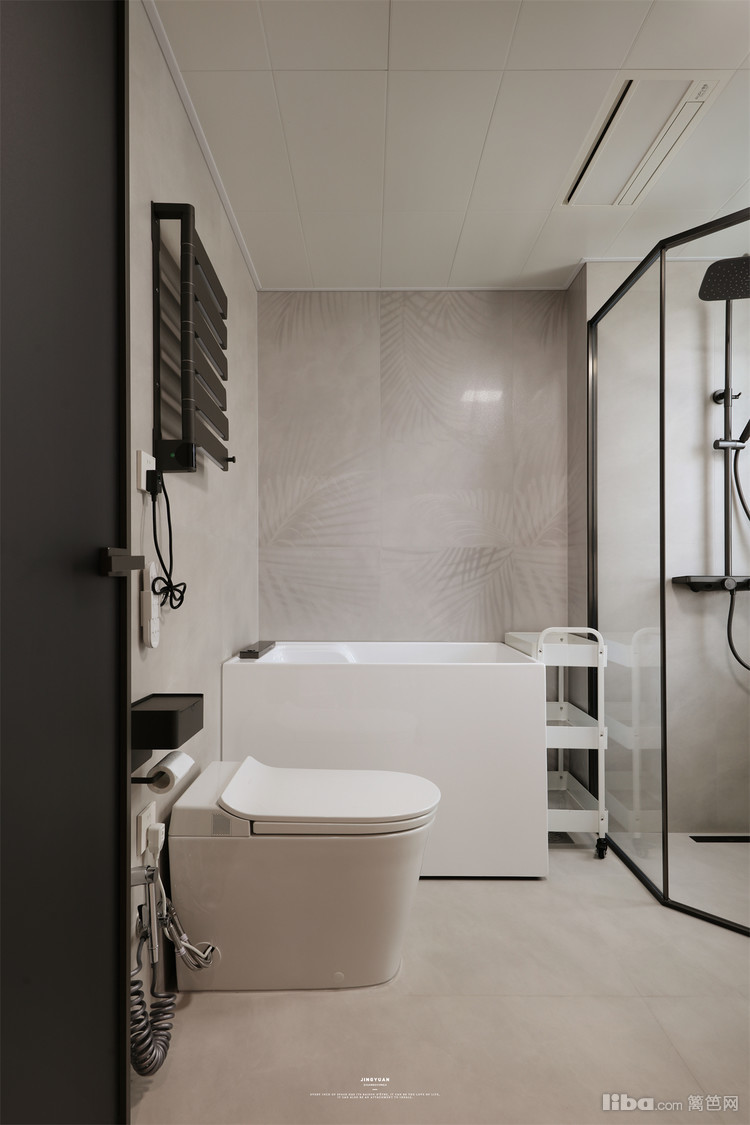 卫生间将每平米空间都利用,方形浴缸与独立淋浴区兼具,划分四功能区,高效实用。