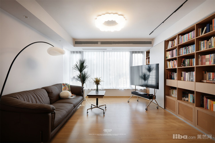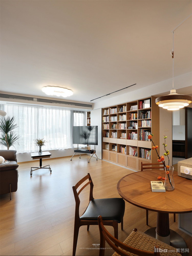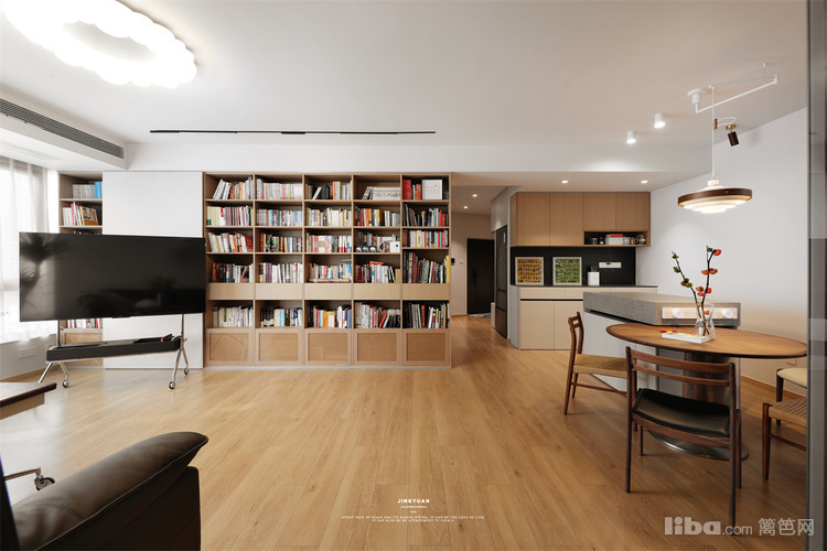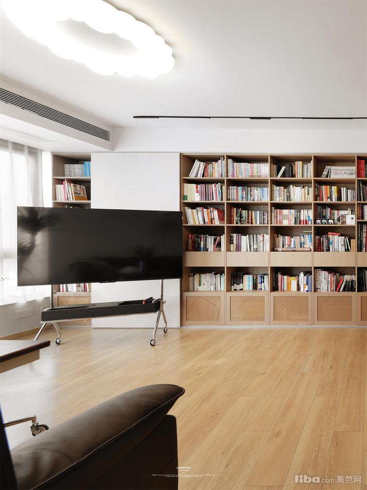 极简原木·客厅爆改家庭图书馆