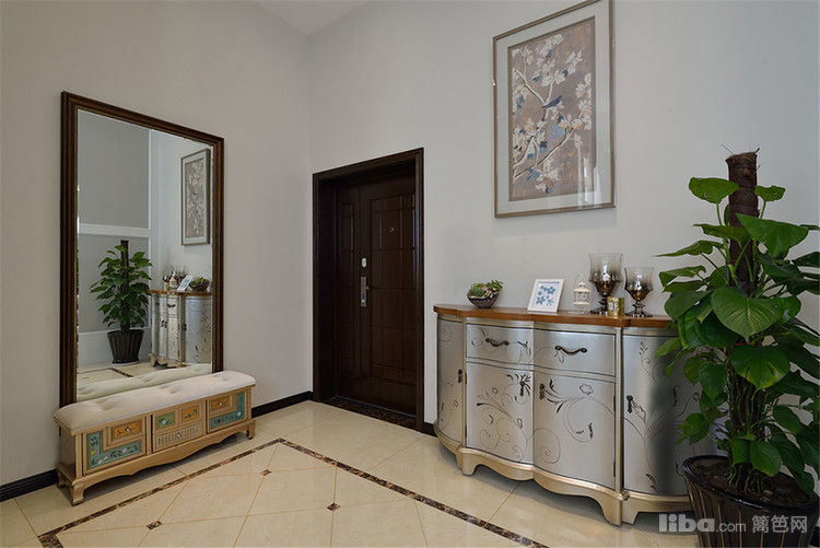 既有浓浓中式氛围的门框造型设计,又有欧美味雅致又璀璨的水晶吊灯,既有中式屏风又有西式护墙板……然而,这一切元素的混搭,最终出来的效果浑然天成协调统一。