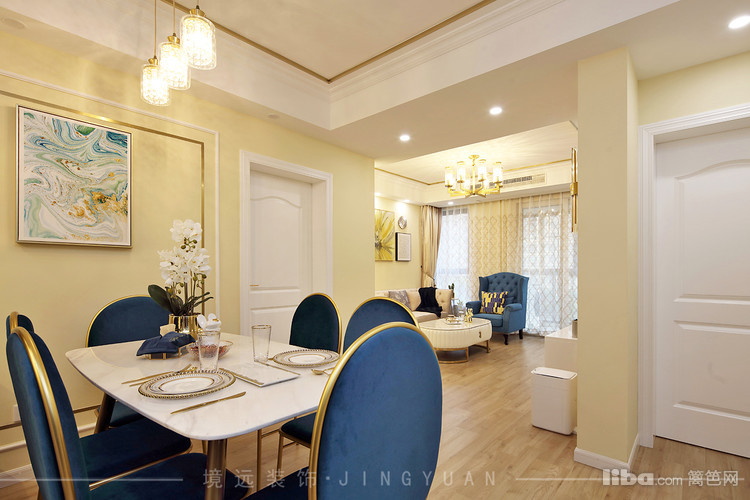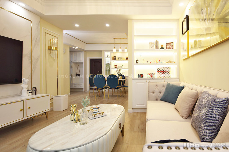 硬装以暖色调为主,软装则以蓝色为主色调,形成淡雅与尊贵的视觉冲击。