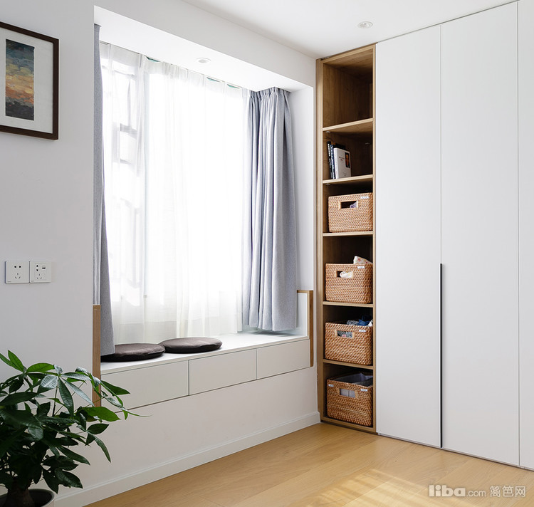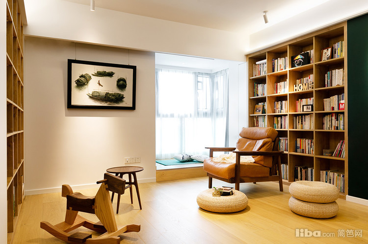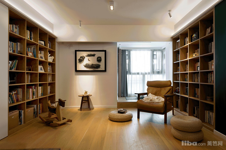 次卧是为父母准备,他们偶尔来小住。满足屋主“书本随处可取”的要求。