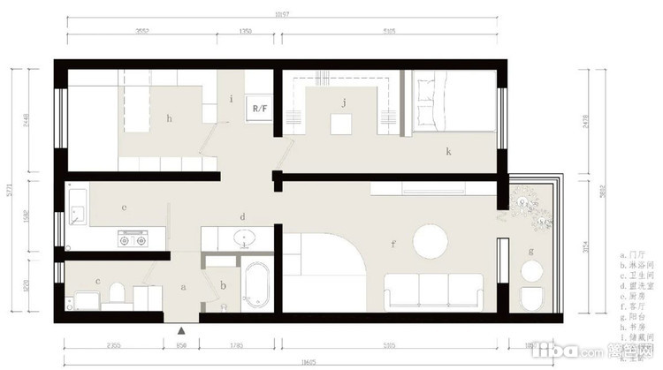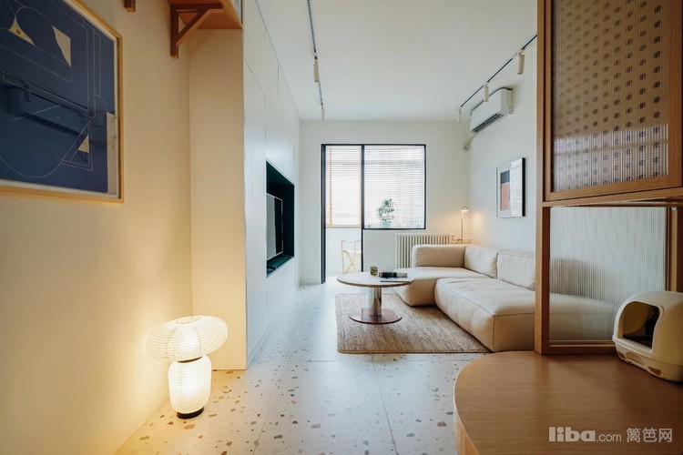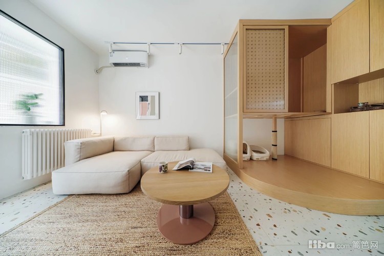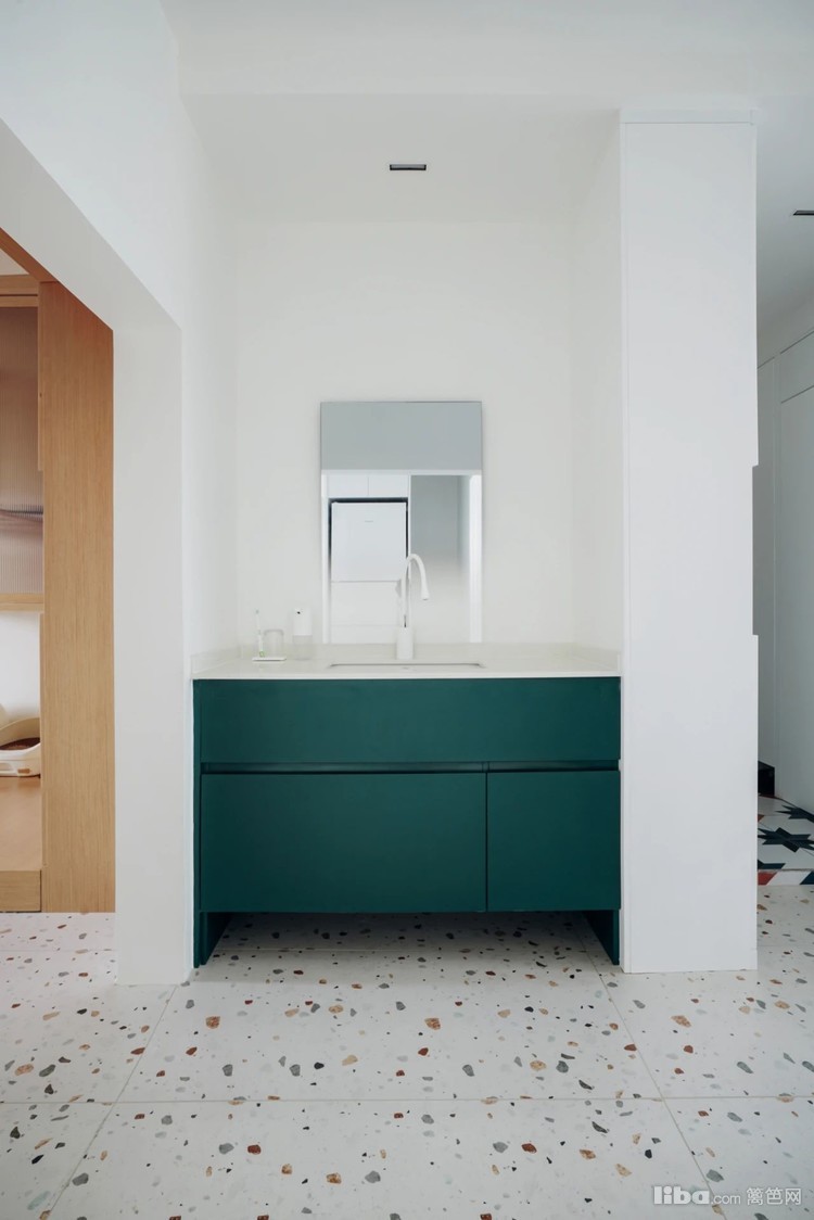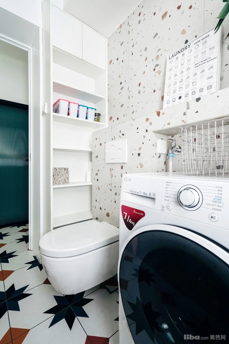 设计师把洗手台和淋浴房外置,原来的2.8㎡狭长整条仅用作如厕和洗衣房,这样使用就宽敞多了。