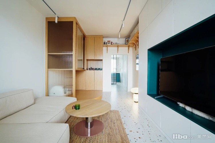 客厅打了一整面墙的电视柜,收纳屋主的各种路由器、游戏主机、游戏盘......
