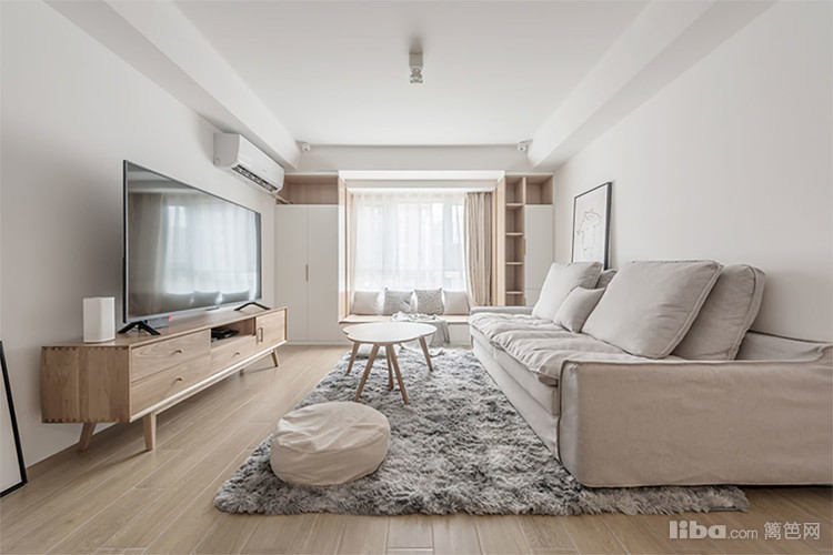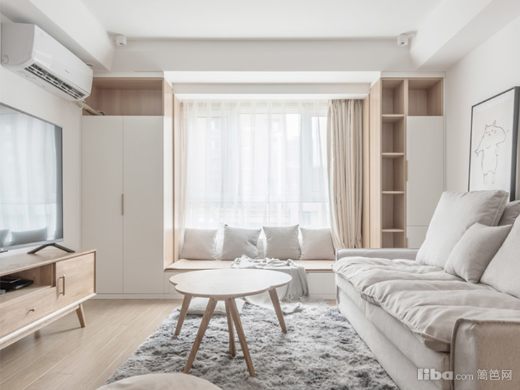 客厅窗户利用两侧墙体设计了两个储物柜,中间部分按照窗台高度做抽屉,收纳杠杠滴~