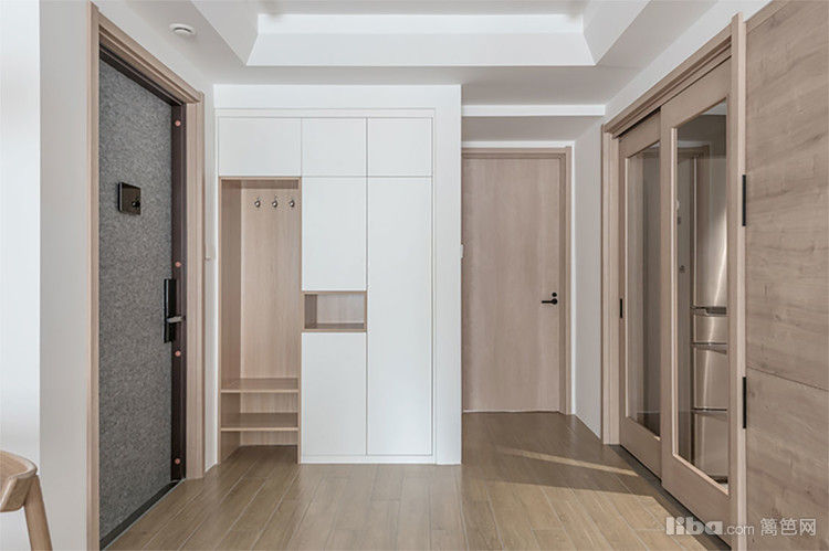 玄关做了一面强大的衣帽柜,底部层板既可以当作换鞋凳又能收纳常穿的鞋子,简洁又实用。