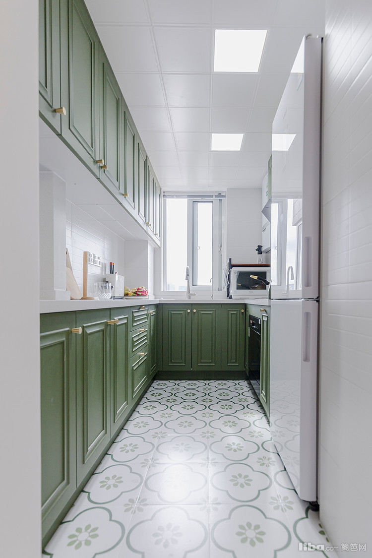 漂亮的厨房才是做饭的动力来源,设计足够长的操作台面,足够的储物柜,好看的颜色搭配+好看的瓷砖。