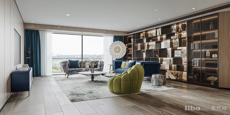 一抹深蓝,宁静悠远.整个空间搭配更显格调,空间内搭配跳色家具使整个空间即温柔高雅,又沉静内敛.
