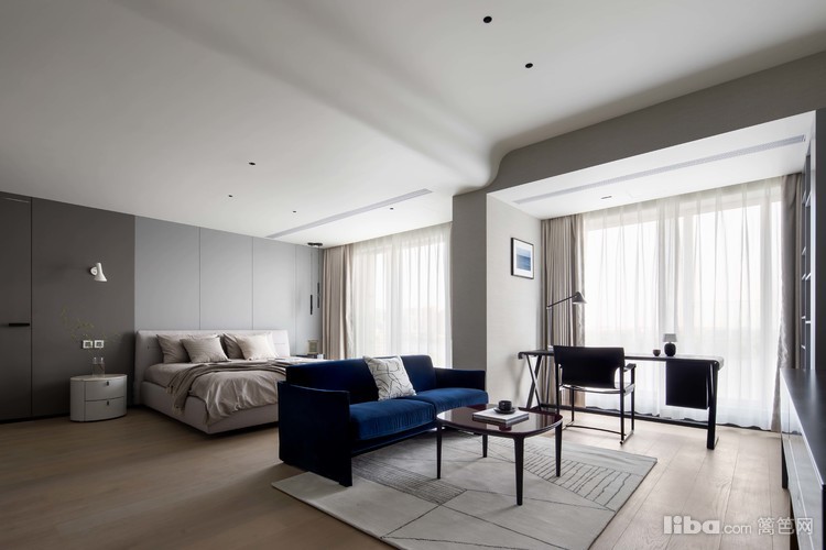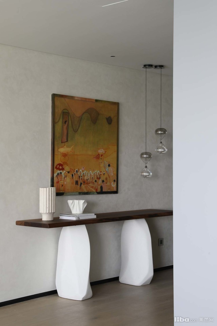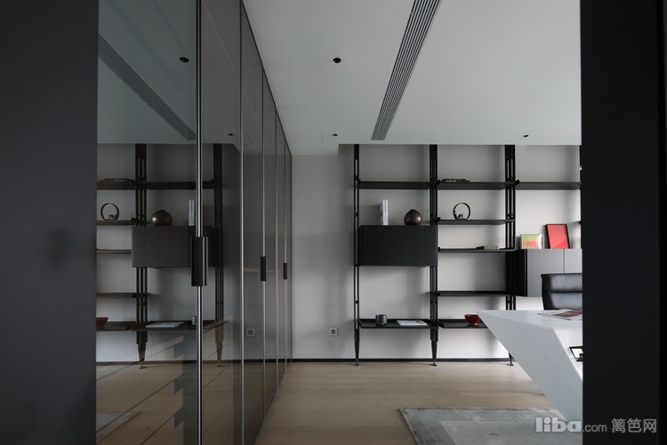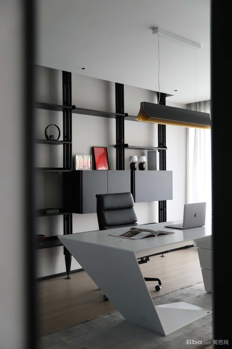 偏安一隅的工作室,是我们为业主沉浸工作时设计的专属“岛屿”,黑白灰交错的色彩为空间基调附着上极简的轻盈,精挑细选的家具灯品画作为空间氛围渲染上艺术的姿态