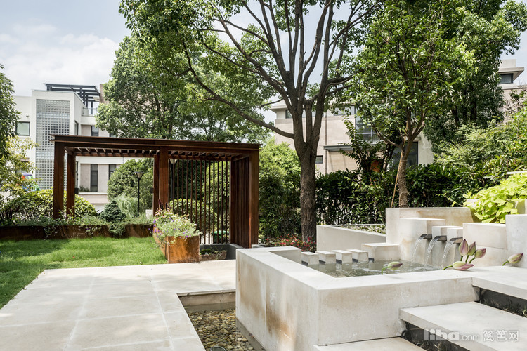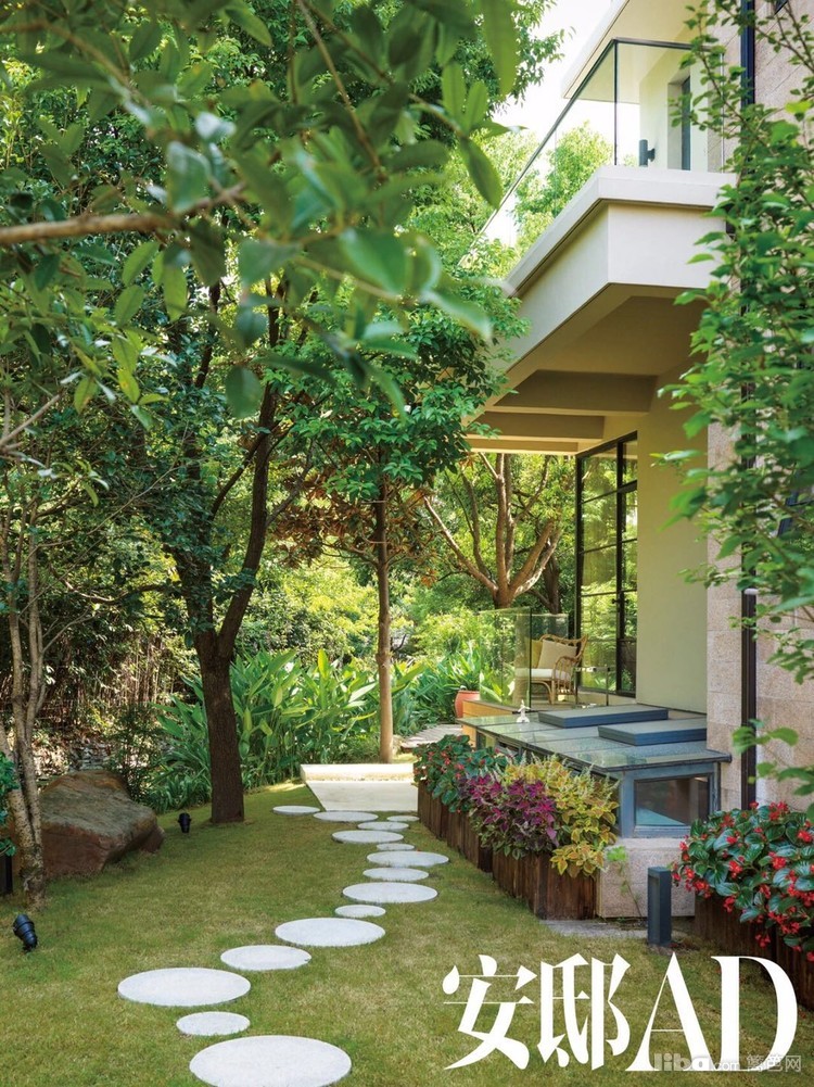 三楼眺望而下,目之所及的是精致的庭院。四周被围墙围绕,院儿内大树成荫,有休闲榻、烧烤架和小池塘,让惬意生活和招呼朋友们有了更多的可能性。