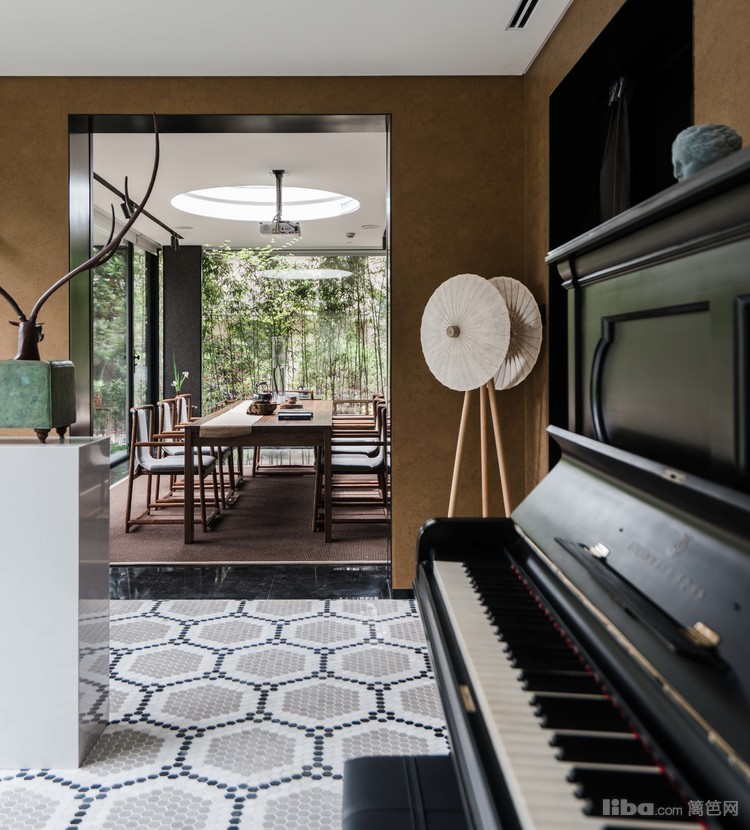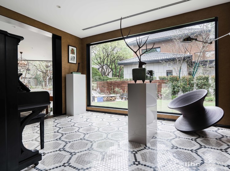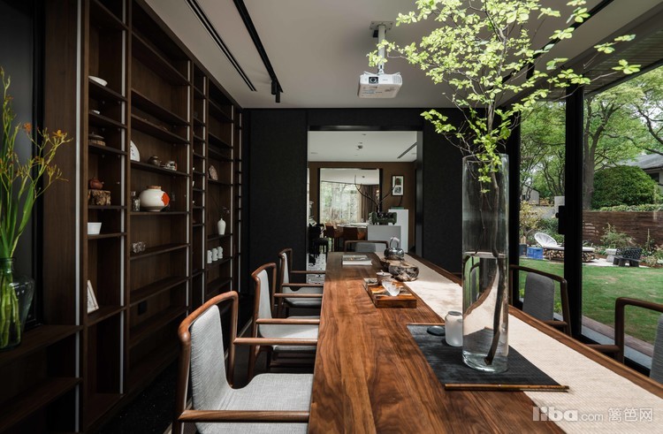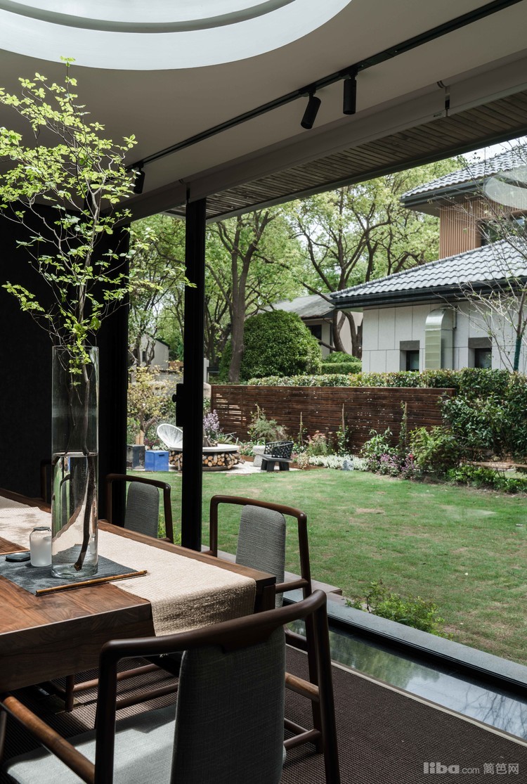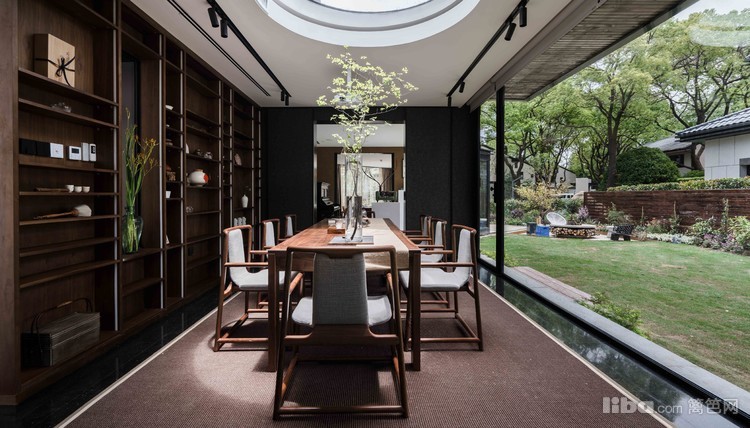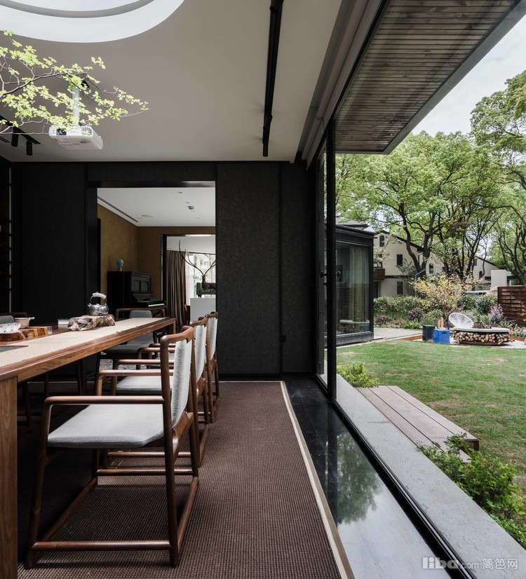 南向长窗携自然光景发出会客邀请,两排长岛椅与曼妙对坐谈天,抬头仰望又是一番“疏影月黄昏”之景,一楼茶室,让人即使在室内恍若置身室外之感。