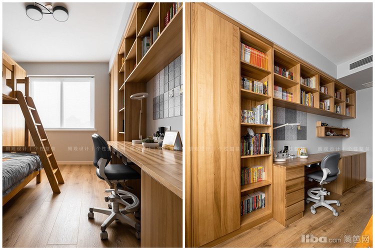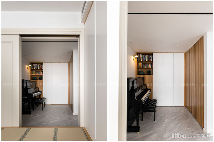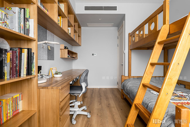 “和式风”更浓郁的榻榻米房无疑是这个家最自在的空间,透光性极佳的百叶帘代替窗帘,让这个房间变得无比通透。两边定制的大面积储物柜配合榻榻米下的储物空间,完美解决整个家庭的储物问题。