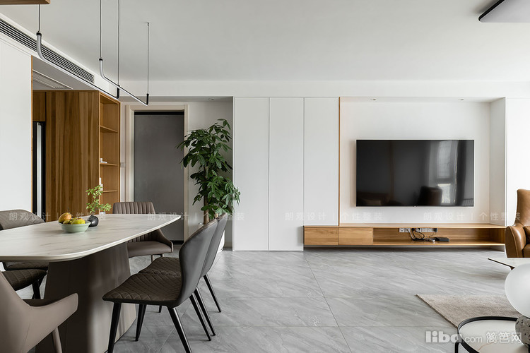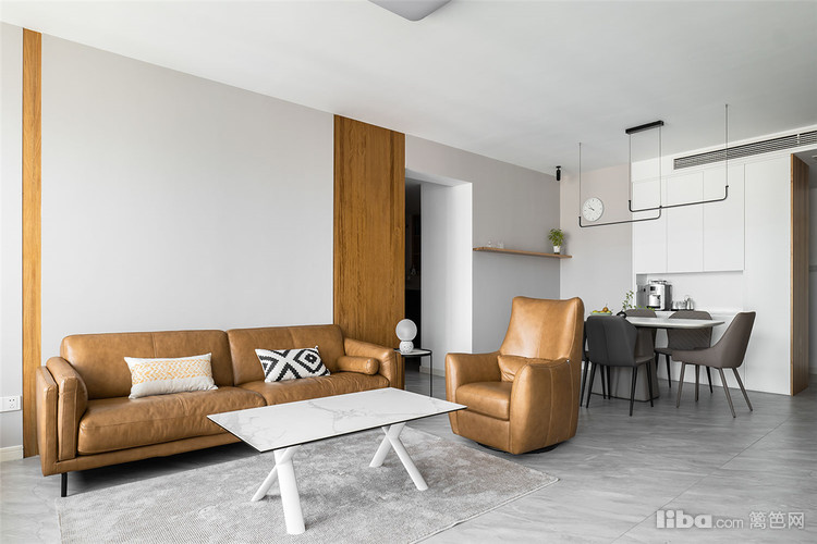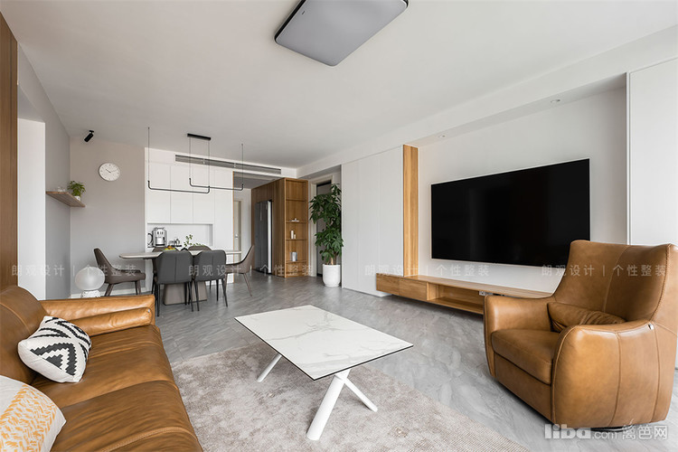 客厅设计秉持“少即是多”的设计理念,墙面大面积留白,辅以纯粹的木质材料做修饰,缔造一种简约到极致的美好感受。