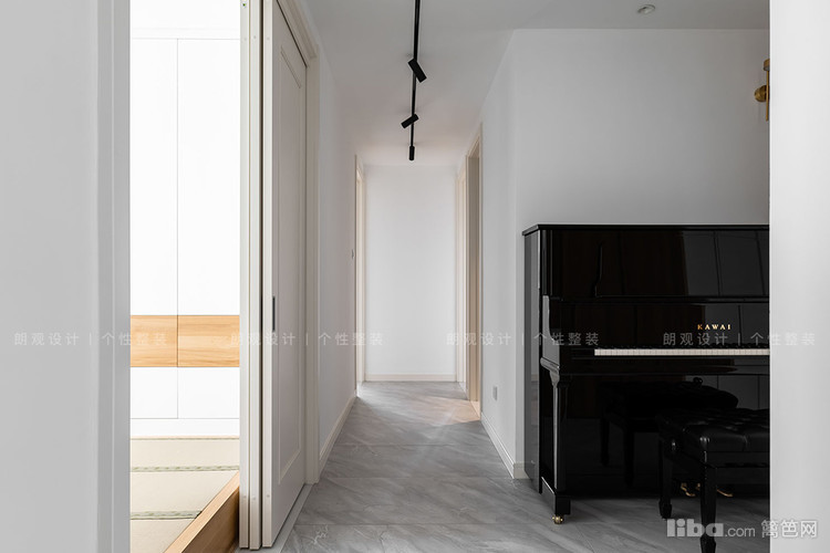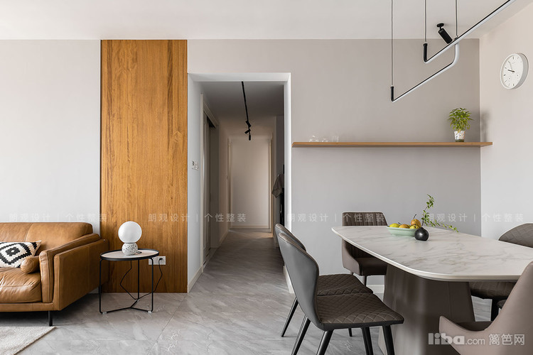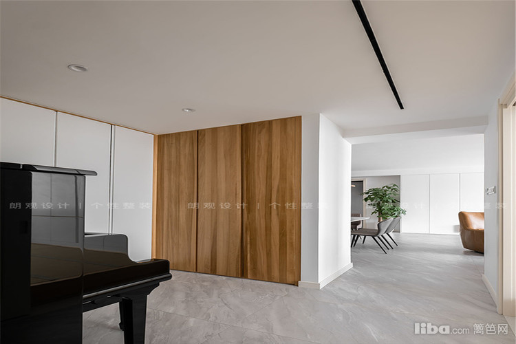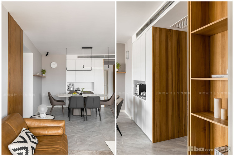 改造后的玄关区面积宽敞,定制背靠背柜体充当隔断,保护业主隐私。