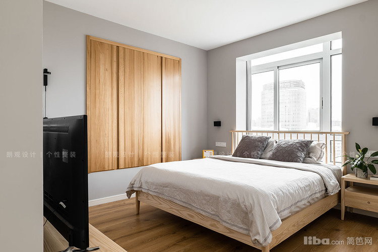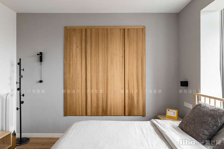 主卧没有储物空间,设计师将原有的卧室飘窗改造成主卧储物柜。原木做柜板,在满足功能性的同时,用原木所固有的质感与纹理做装饰,带来艺术化欣赏。