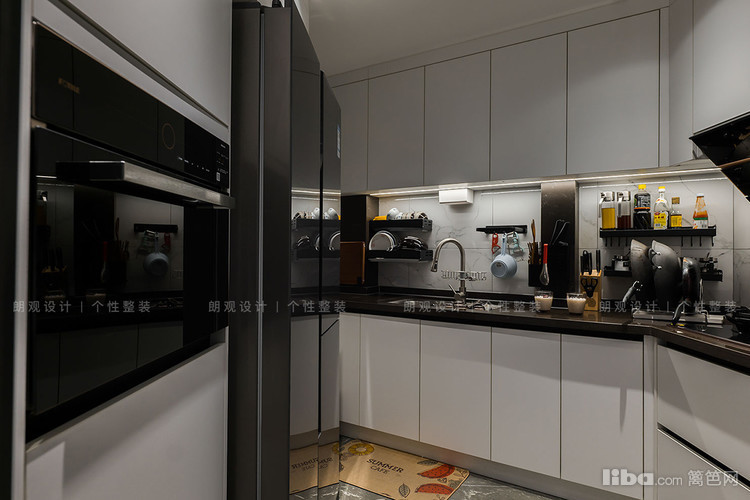 厨房设计遵循“小空间,大储物”的原则,定制高柜嵌入家电,结合上下分体式橱柜设计,最大程度利用纵向空间,增加储物,提升空间利用率,维持厨房干净利落。
