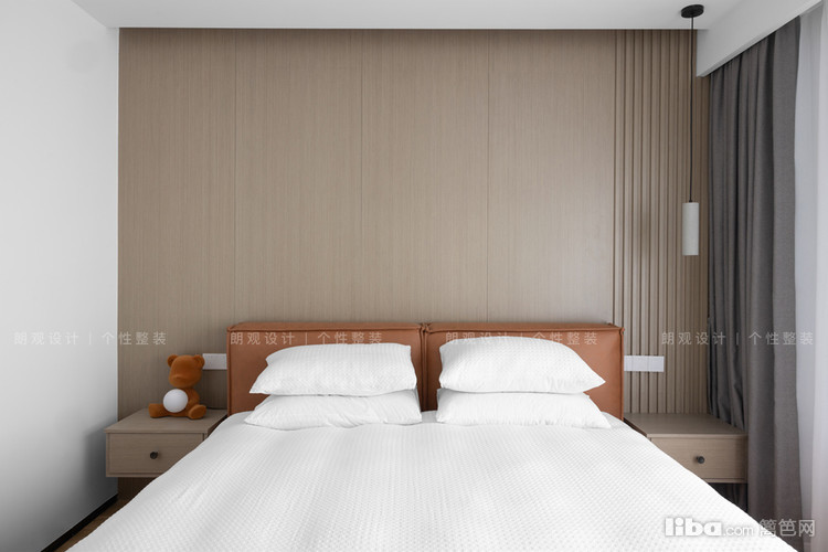 橙色调调的床结合木饰面的温馨,给人非常舒适安逸的感觉