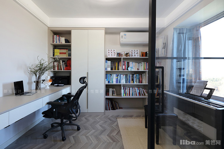 书房承担起一家人的工作学习,超长书桌既可以满足男主工作需求,也能用于监督女儿写作业。