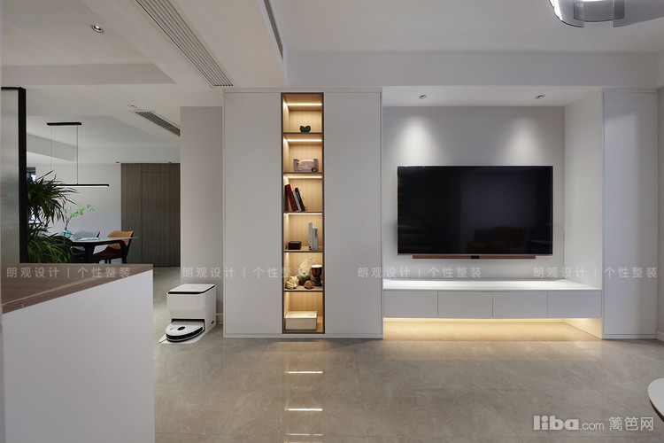 阳台纳入客厅提升空间通透感,并延续电视墙顶天立地的储物柜,营造视觉上的统一,增加储物空间。