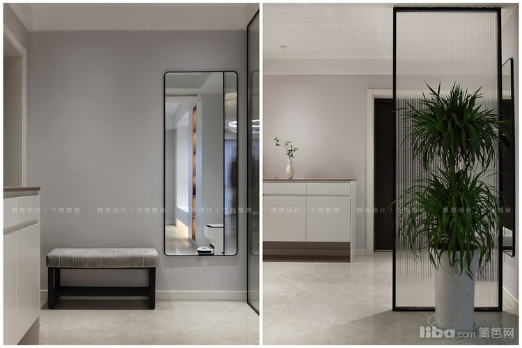 将原玄关区域的实墙隔断改为长虹玻璃隔断,既保证了隐私又改善了室内采光问题,一举两得。