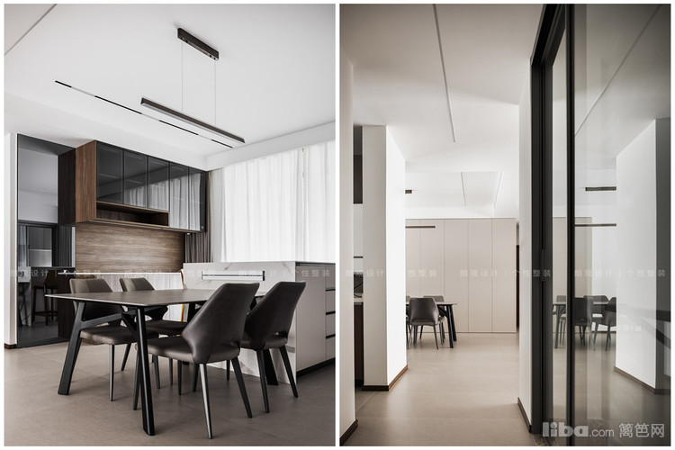 餐厅采用岛台+餐桌的组合形式,与餐边柜形成环形动线。