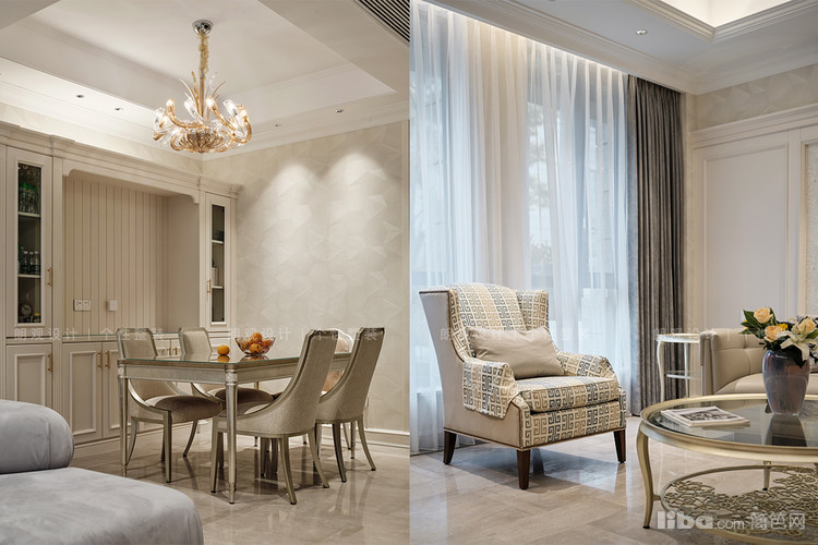 客厅象牙白的护墙板搭配同色系壁纸,呈现出轻缓优雅的空间语言。