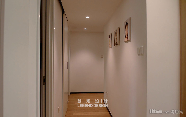 通往主卧的过道上,是老人房和隐藏式的衣帽间。设计师利用原本老人房的部分空间做了改动,增加的步入式衣帽间,解决了一家六口的大容量储物需求,空间宽绰。