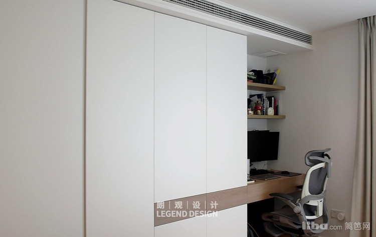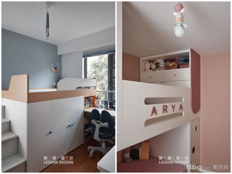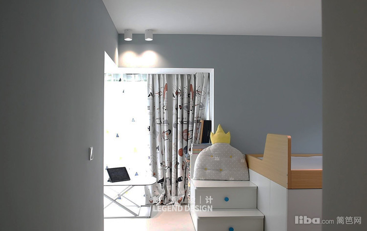 主卧空间采用奶白、灰的色彩,整体色调相互交融,温馨而舒适。两个儿童房的设计上,设计师除了保持简约风格的理念,注重空间的整洁和极简设计,更结合孩子的性别个性。