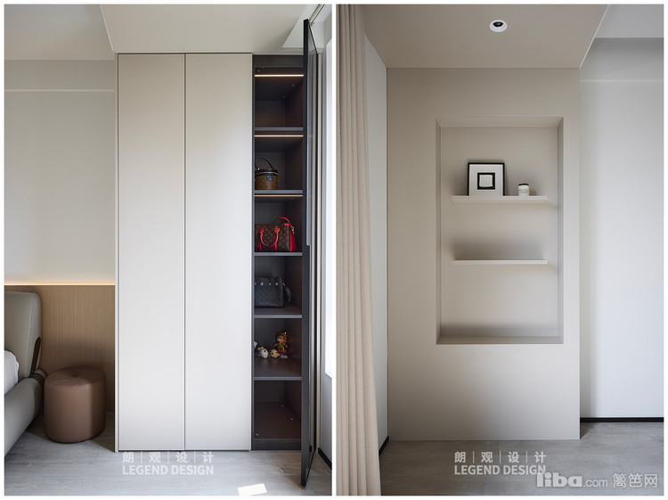衣帽间柜体同样做了分段式的设计,搭配灯光的氛围营造,不仅有充足的储物空间,还增添视觉的高级感。